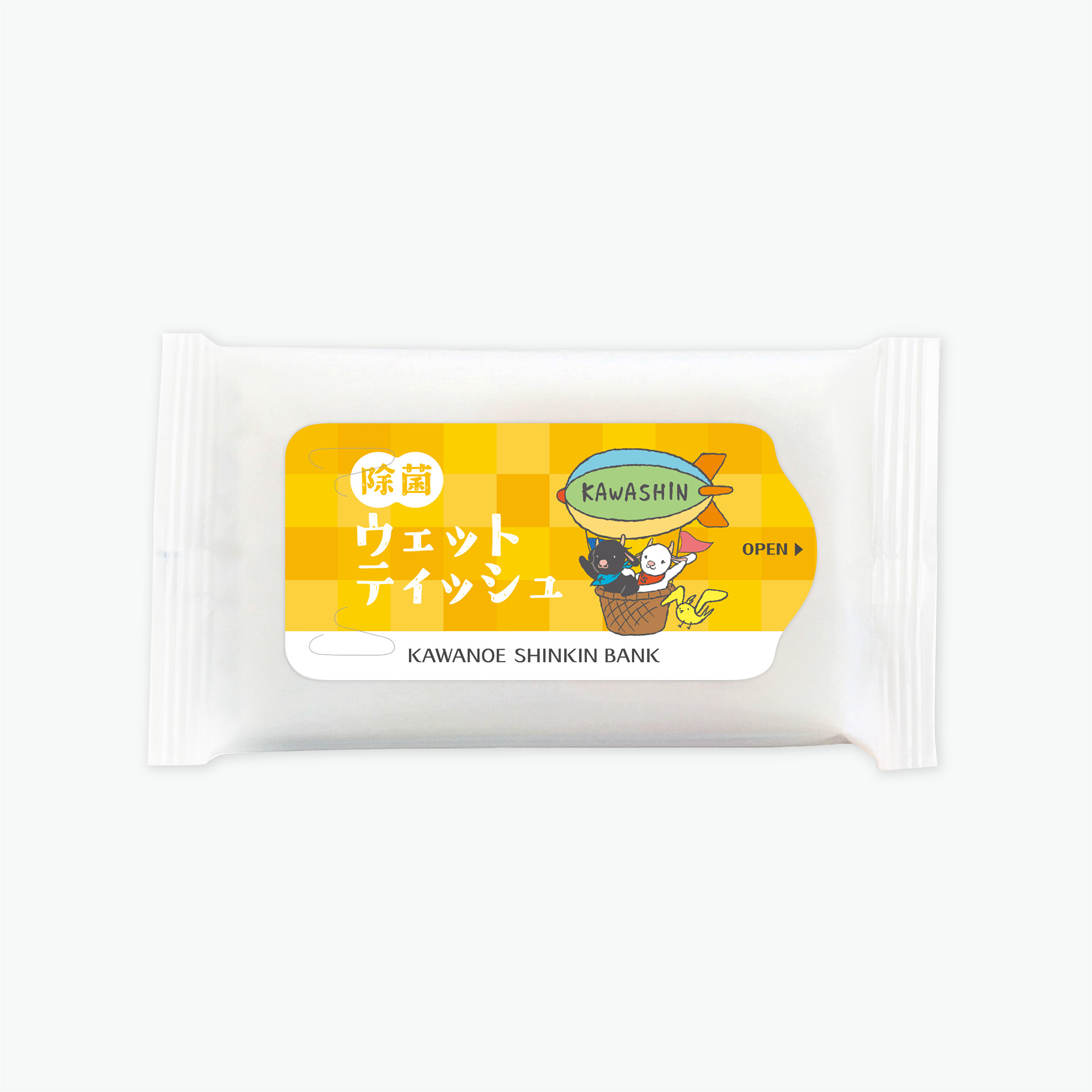 愛媛県四国中央市にある川之江信用金庫さまのノベルティ「除菌ウェットティッシュ」をデザインしました