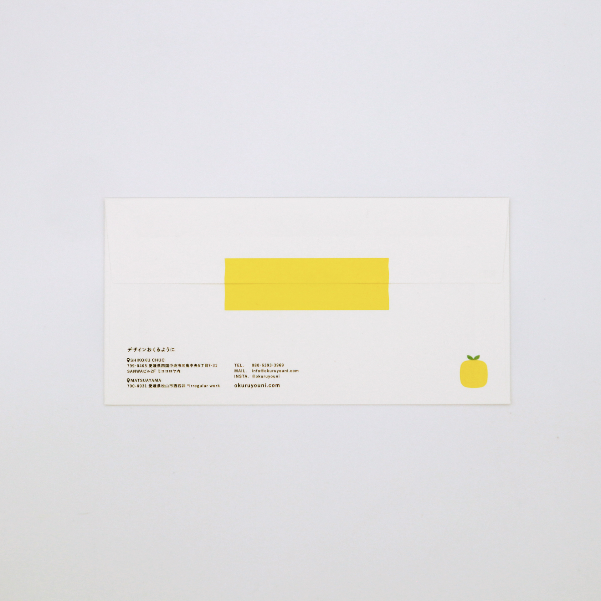 フラップ(封筒のふた)の部分にラッピングテープでとめたようなデザインをあしらっています